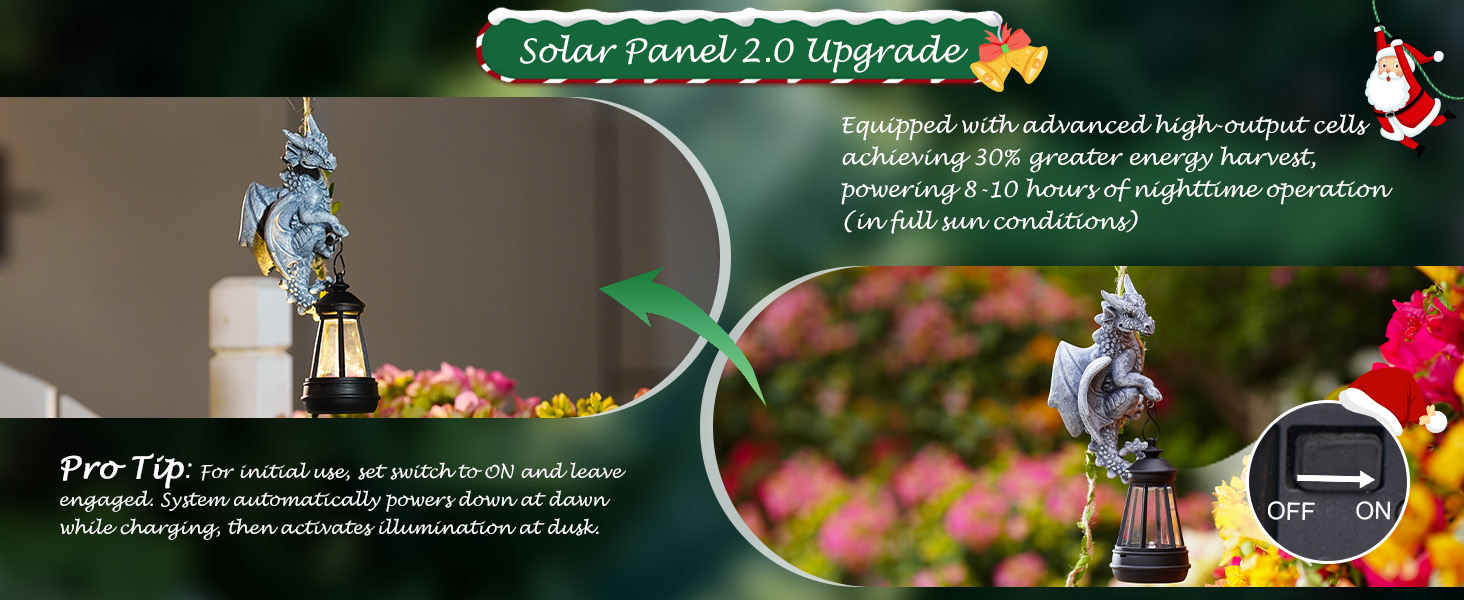 Solar Dragon Outdoor Statues for Garden: Outside Hanging Climbing Sculptures with Lantern Decor for Yard Art Porch Balcony - Birthday Gifts for Grandma Mom Women