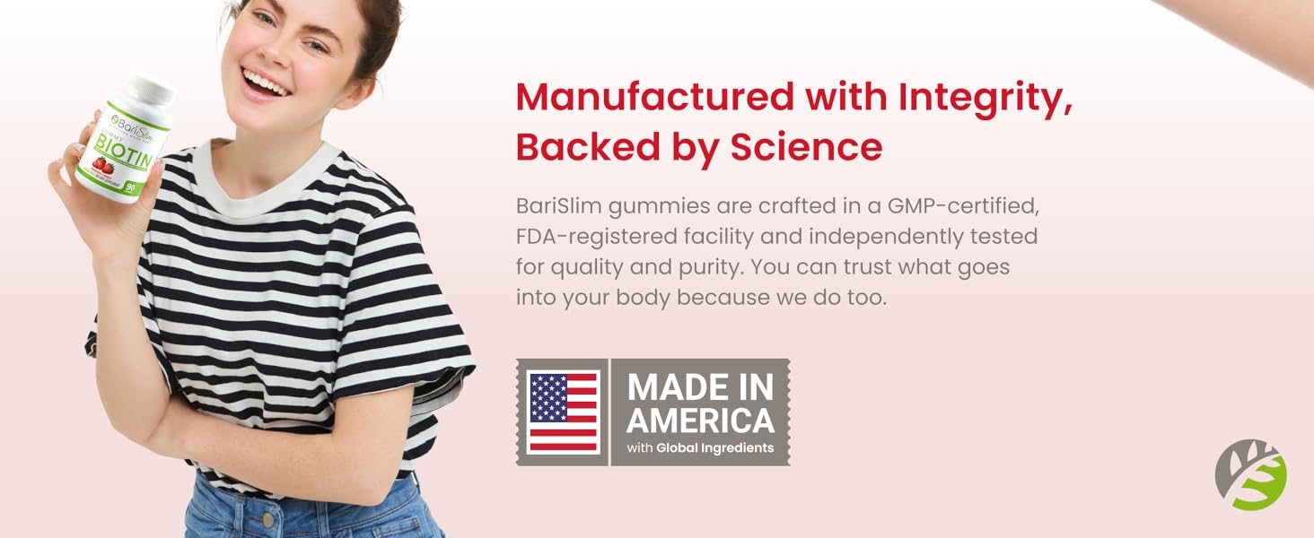 BariSlim Bariatric Vitamin Biotin Gummies deliver 5000 mcg of high-potency biotin in a delicious, easy-to-digest strawberry-flavored gummy. Specially formulated for patients after weight loss surgery, these non-GMO, gluten-free, and vegan-friendly chews support hair, skin, and nail health with clean, allergen-free nutrition made in a GMP-certified USA facility.