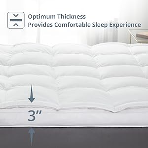 Ok. So, I got this to use on a 20” King Koil twin size air mattress. The air in the mattress made it chilly to sleep on. Although—it was honestly the most comfortable thing I’d ever slept on. So, I steered away from all the “cooling” mattress toppers, and chose this one for its supposed softness and warmth. I wound up not even using this topper on the air mattress, as the mattress developed a hole on the seam that, despite my efforts and various patch solutions, could not be adequately patched. So, in the meantime, I had ordered a Zinus 12” tea infused twin size mattress. Figured I’d try the feather topper on the Zinus, since I was in possession of both products anyway. Well. The feather topper made my first night on the Zinus one of the worst night’s sleep I ever experienced. While the Zinus is very firm but somehow still soft because of the memory foam, the feather topper made it hard and the ultimate in discomfort. I had given it plenty of shaking and fluffing up, plus I let it be for the entire time I allowed the Zinus to expand and fluff up. Two evenings later I set the Zinus on the frame, I put the feather topper on top of that, and placed a sheet on. WORST. NIGHT. EVER. To make matters worse, I was “so sure” that the feather topper was going to be a win that I threw out the packaging with the barcode on it before I even tried the darn thing. So, I can’t return it. Well, that’s completely on me. I took a risk and I blew it. I can’t even, in good conscience, donate this thing. How can I subject some other unsuspecting consumer or end-user to THAT level of discomfort? And as for the down layer, it was next to nothing. I felt a few goose feather quills in the back part. Please do what I didn’t do. Pay attention to the negative reviews and pass on this product. I paid a lot for dumpster fodder, and I regret my mistake.