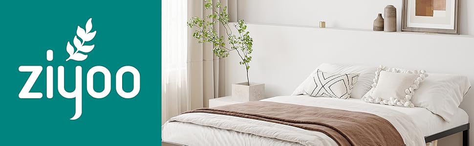 The ZIYOO Queen Size Bed Frame features 3-inch extra-wide wooden slats that provide 20% stronger mattress support, a noise-free integrated structure for a stable and quiet sleep, and a 14-inch height with 12 inches of under-bed storage space. Designed for easy assembly without the need for a box spring, it perfectly fits standard queen mattresses and offers a durable, modern platform bed solution.